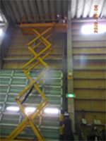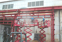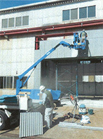 クレーン車を用いて梁の粉塵清掃(作業前)